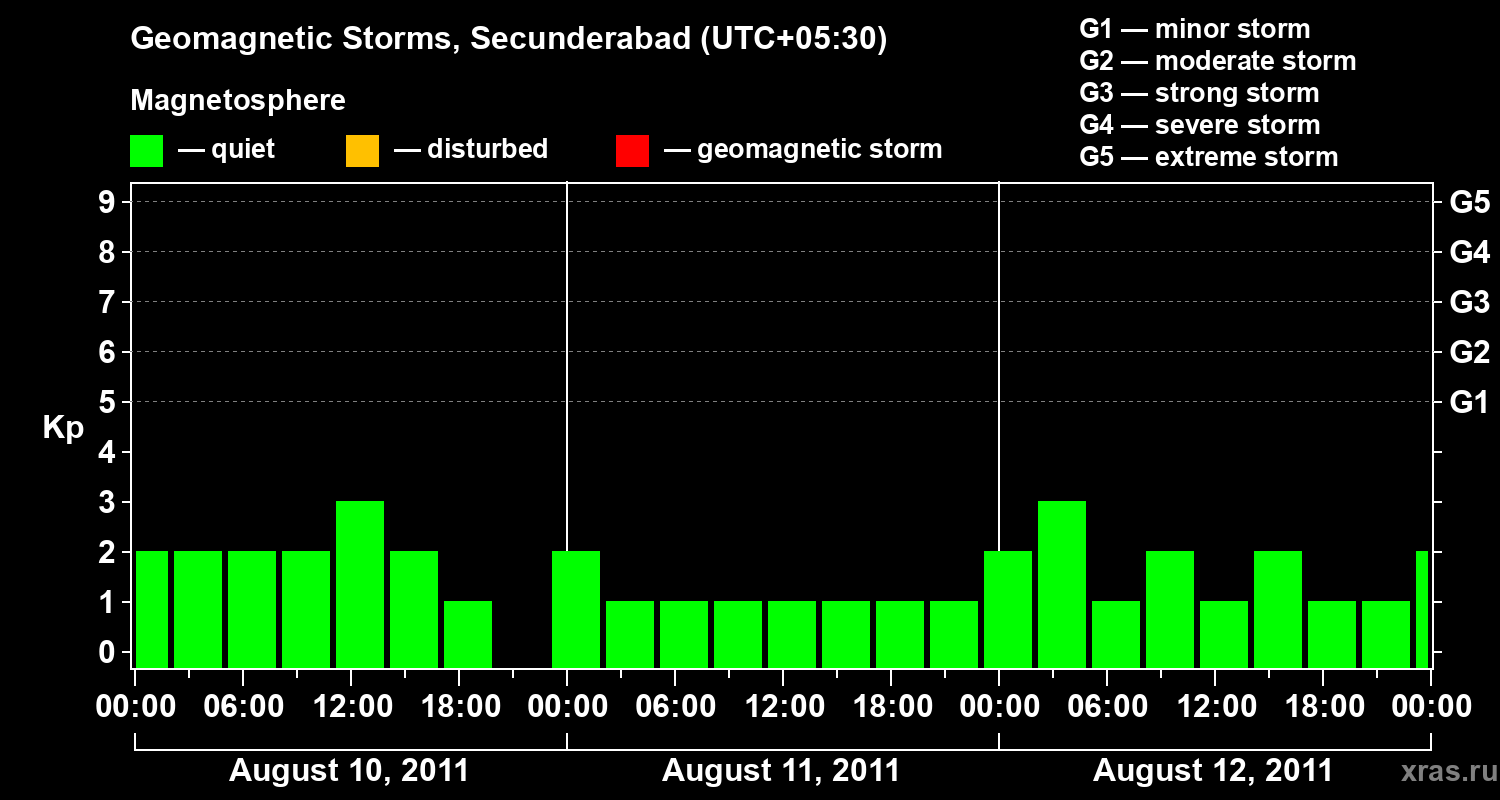 Geomagnetic storms in Secunderabad in August 2011