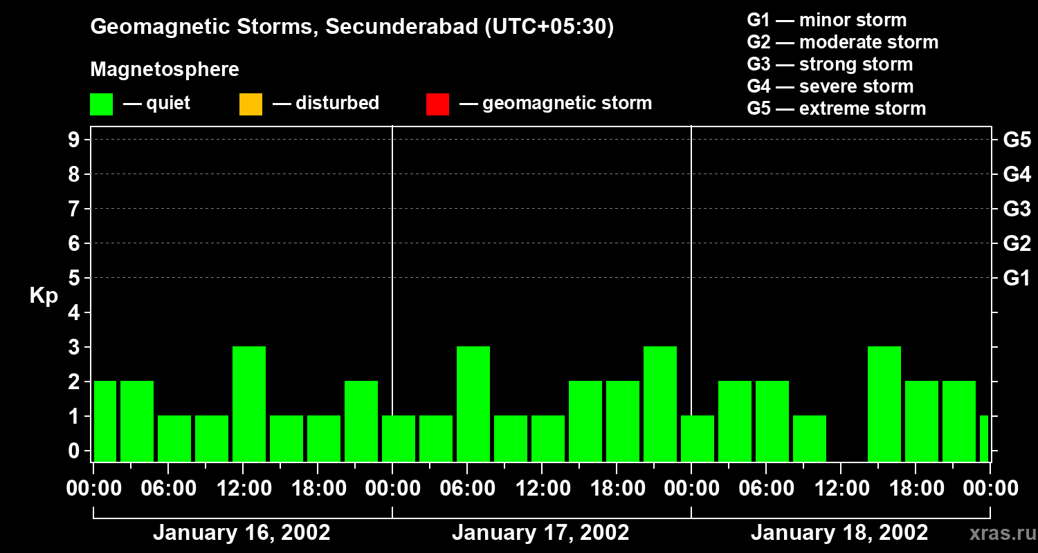 Geomagnetic storms in Secunderabad in January 2002