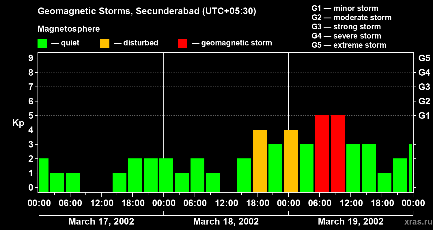Geomagnetic storms in Secunderabad — Mar 19, 2002