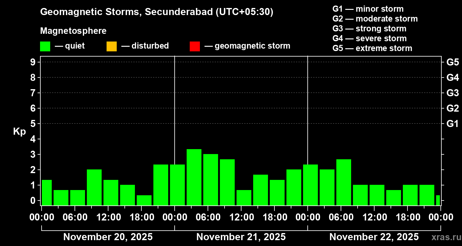 Geomagnetic storms in Secunderabad on Nov 22, 2025