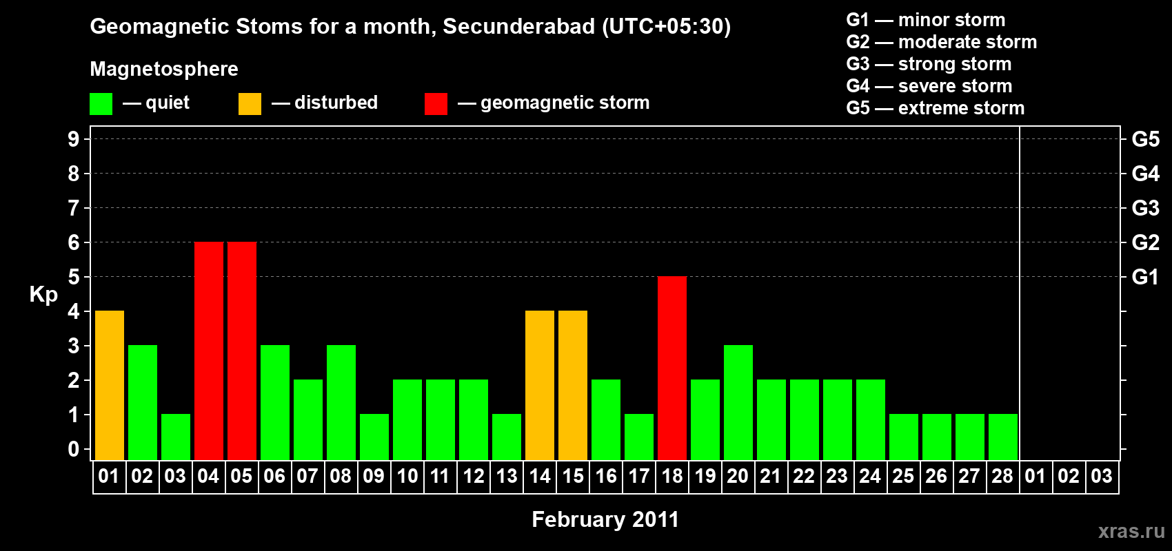 Geomagnetic storms in Secunderabad — Feb 28, 2011