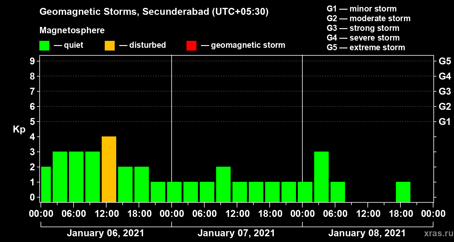 Geomagnetic storms in Secunderabad — Jan 08, 2021