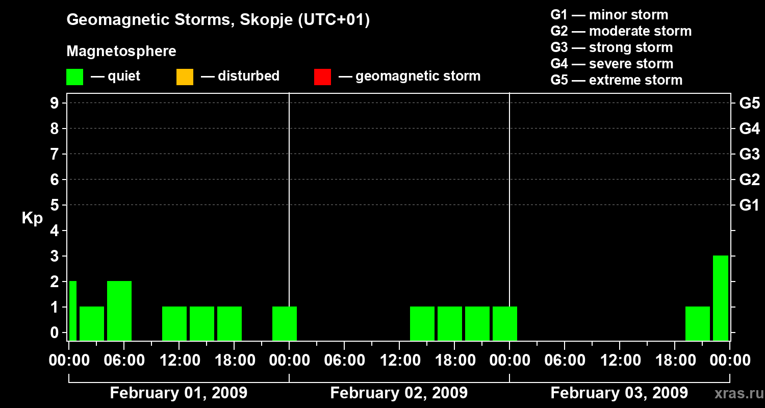 Geomagnetic storms in Skopje on Feb 03, 2009