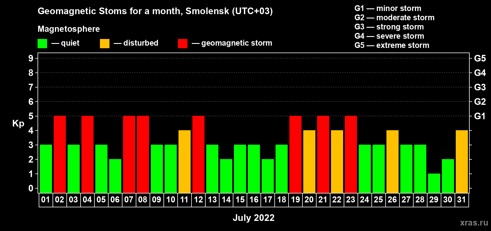 Geomagnetic storms in Smolensk in July 2022