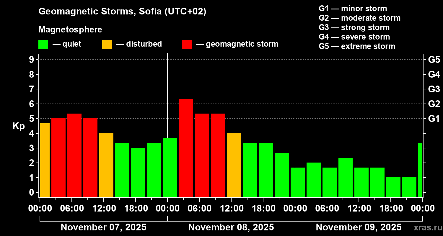 Geomagnetic storms in Sofia — Nov 09, 2025