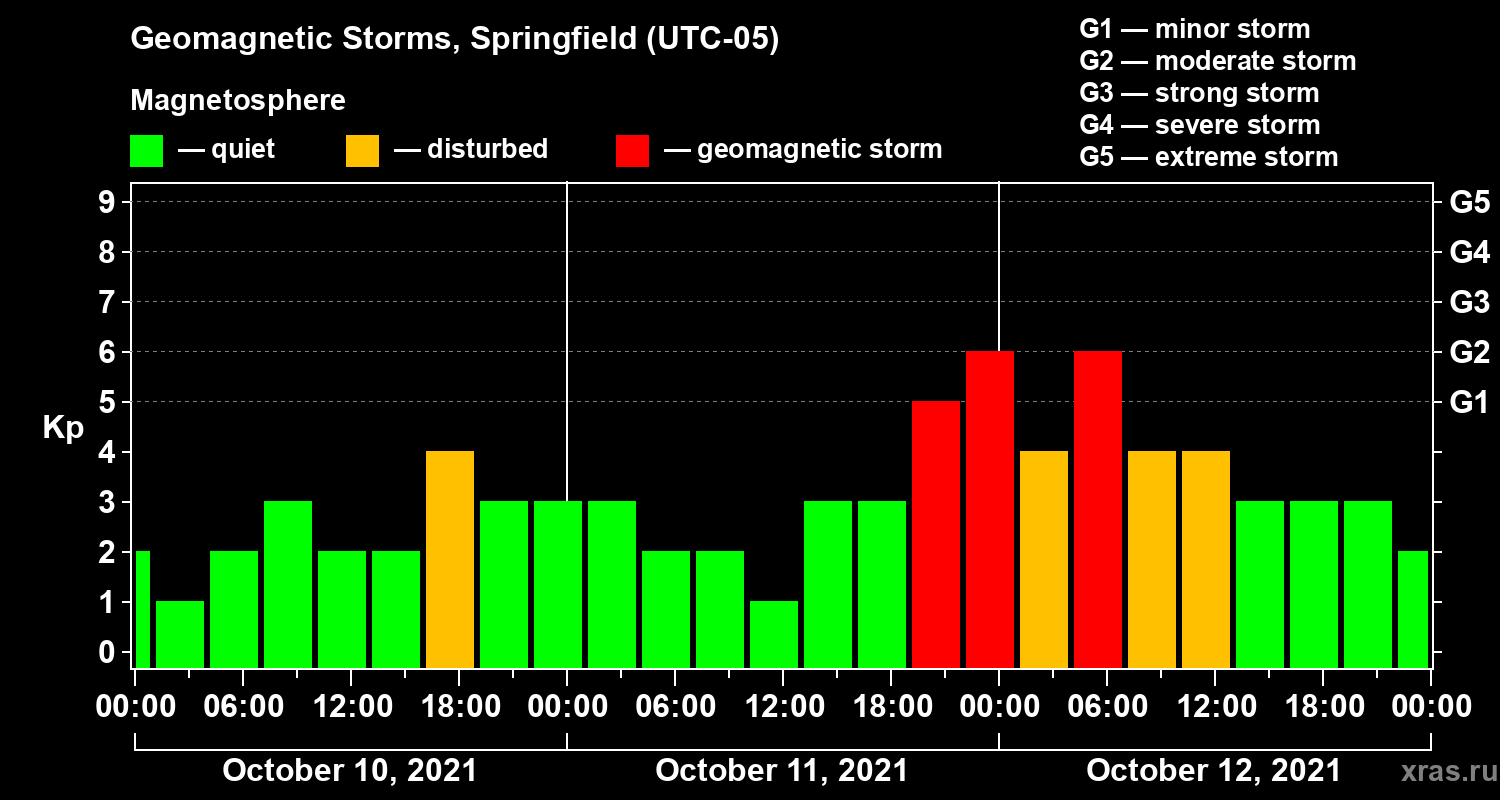 Geomagnetic storms in Springfield — Oct 12, 2021
