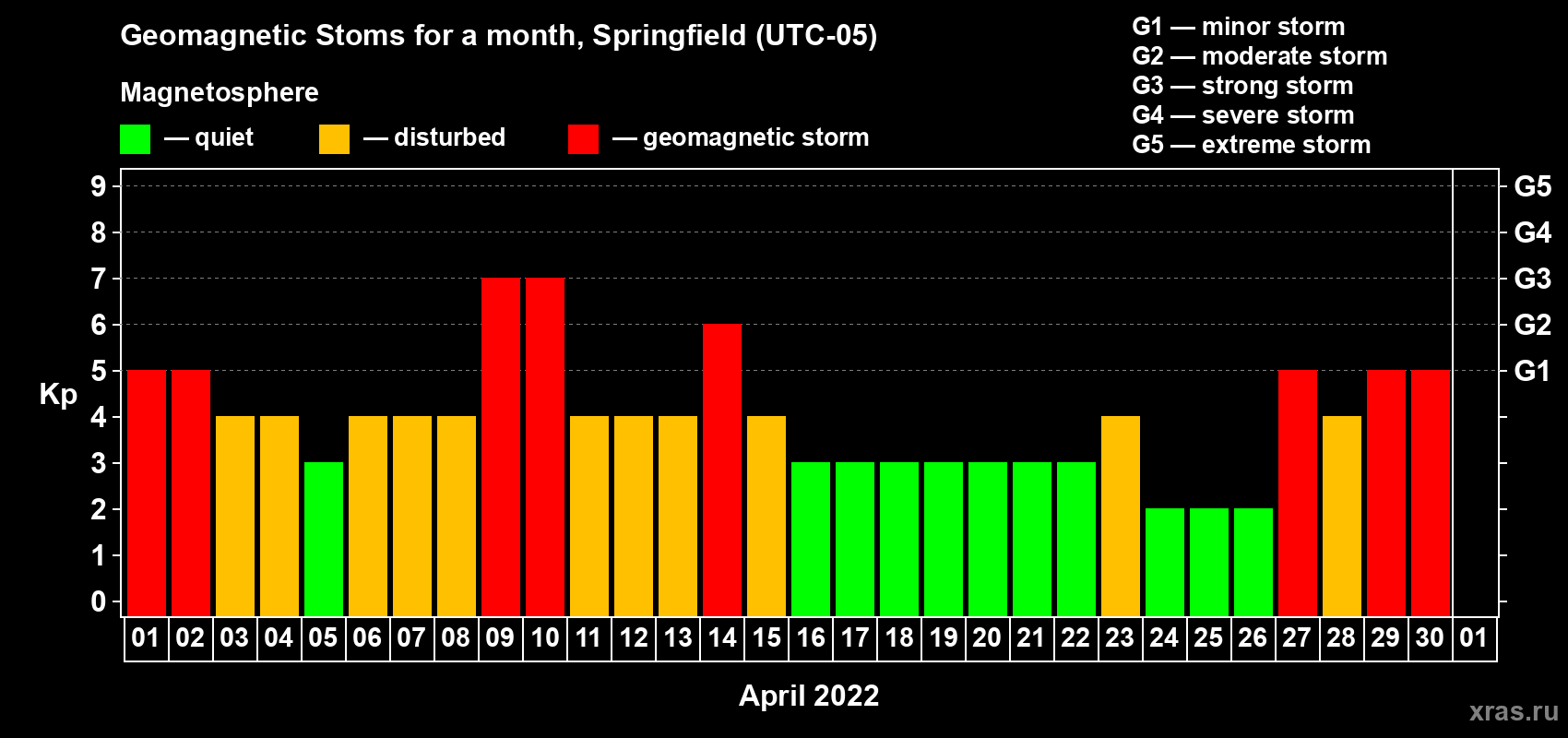Geomagnetic storms in Springfield — Apr 25, 2022