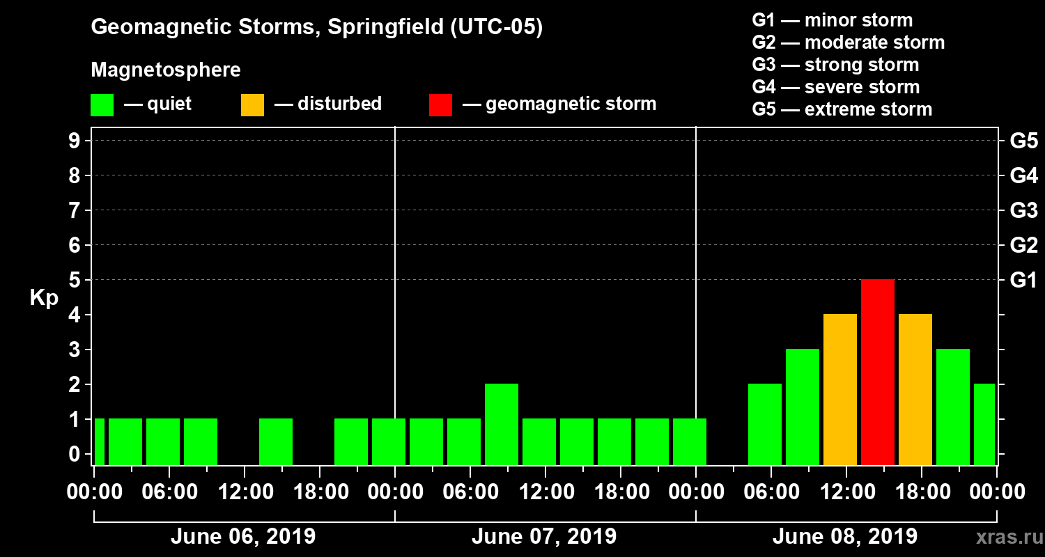 Geomagnetic storms in Springfield on Jun 08, 2019