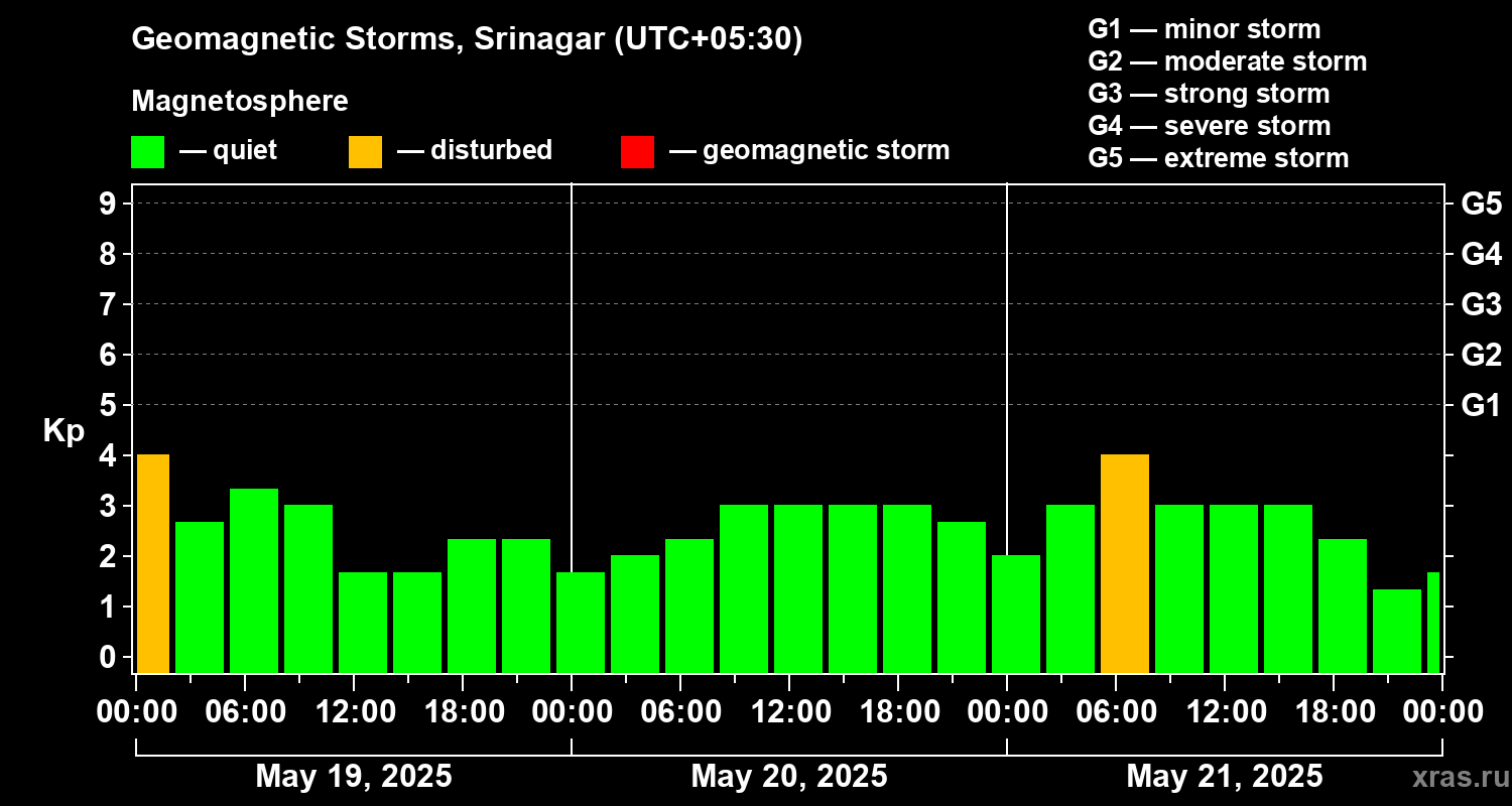 Geomagnetic storms in Srinagar — May 21, 2025