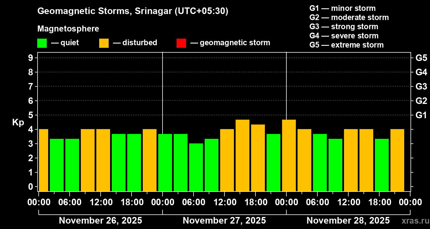 Geomagnetic storms in Srinagar — Nov 28, 2025