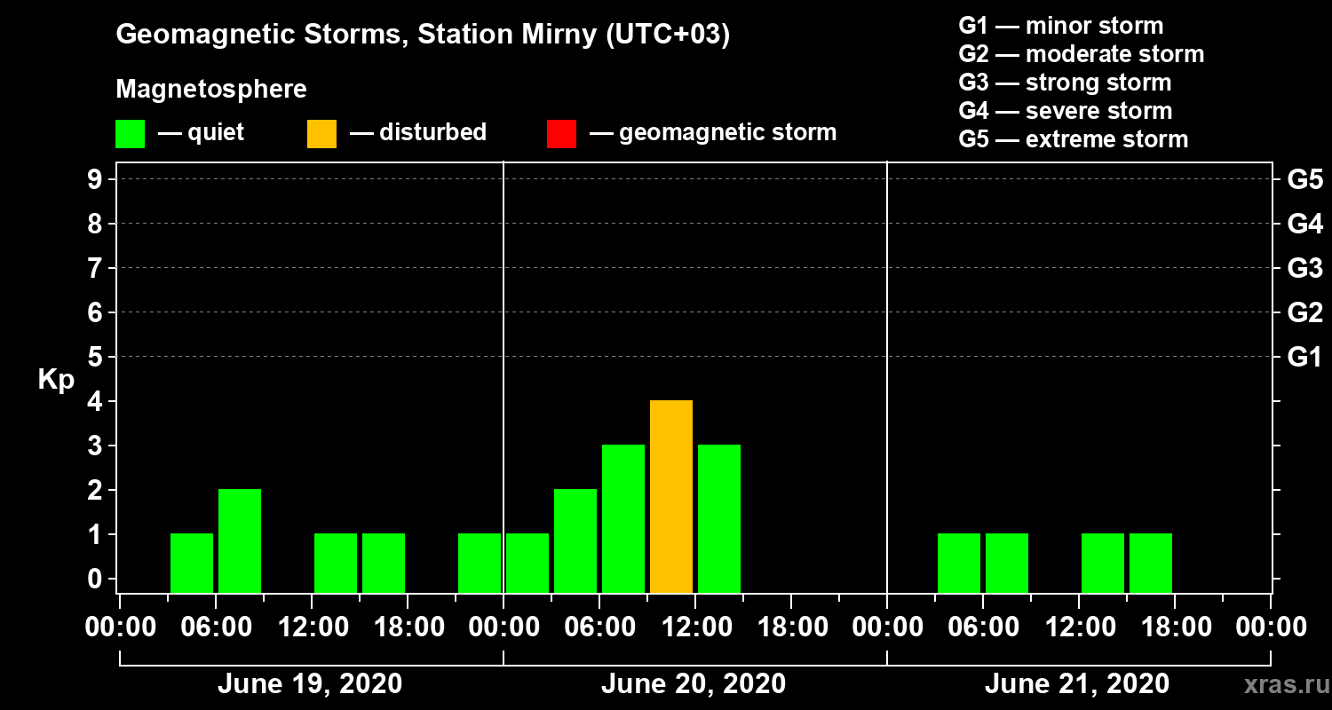 Geomagnetic storms in Station Mirny — Jun 21, 2020