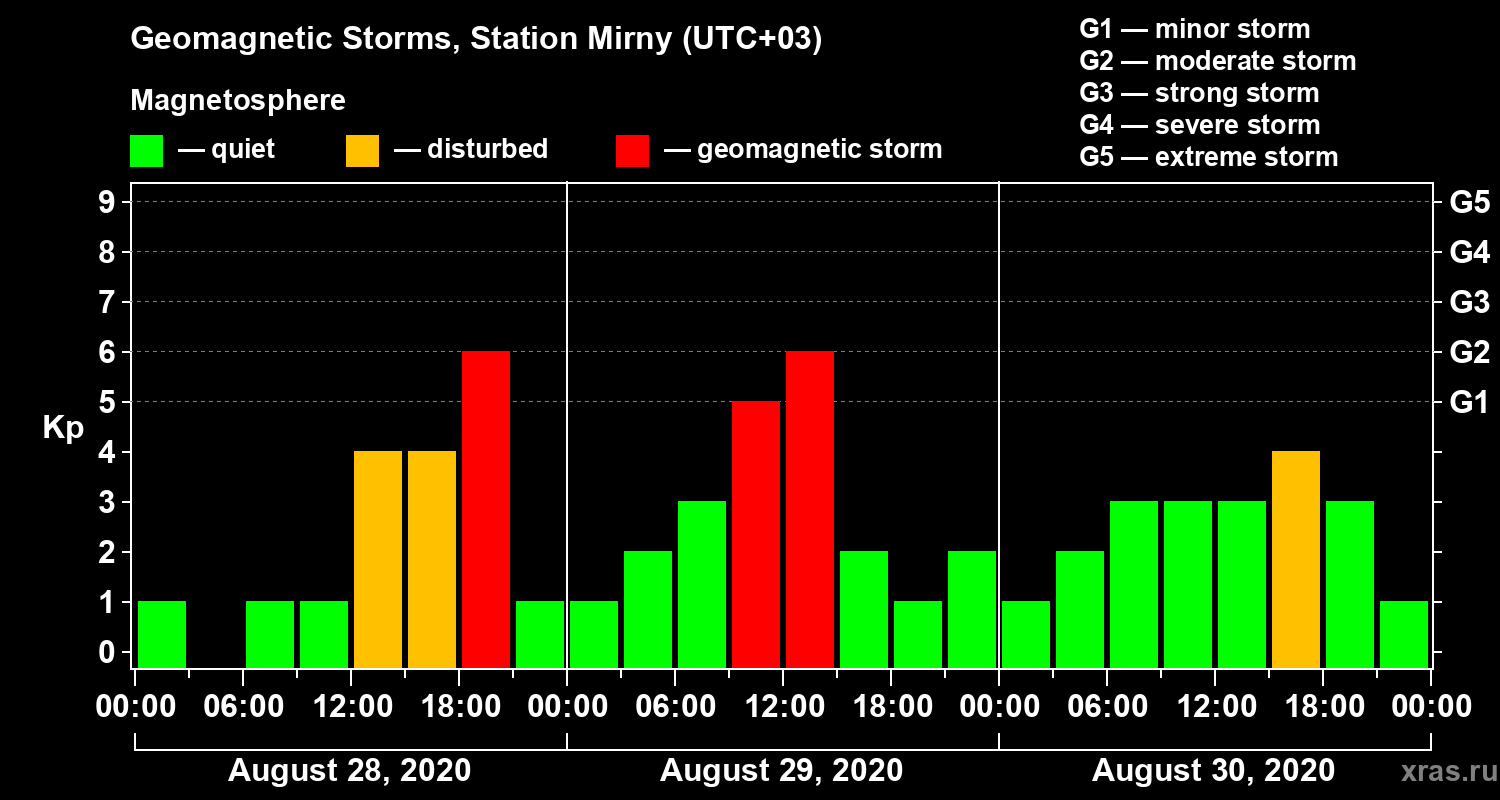 Geomagnetic storms in Station Mirny — Aug 30, 2020