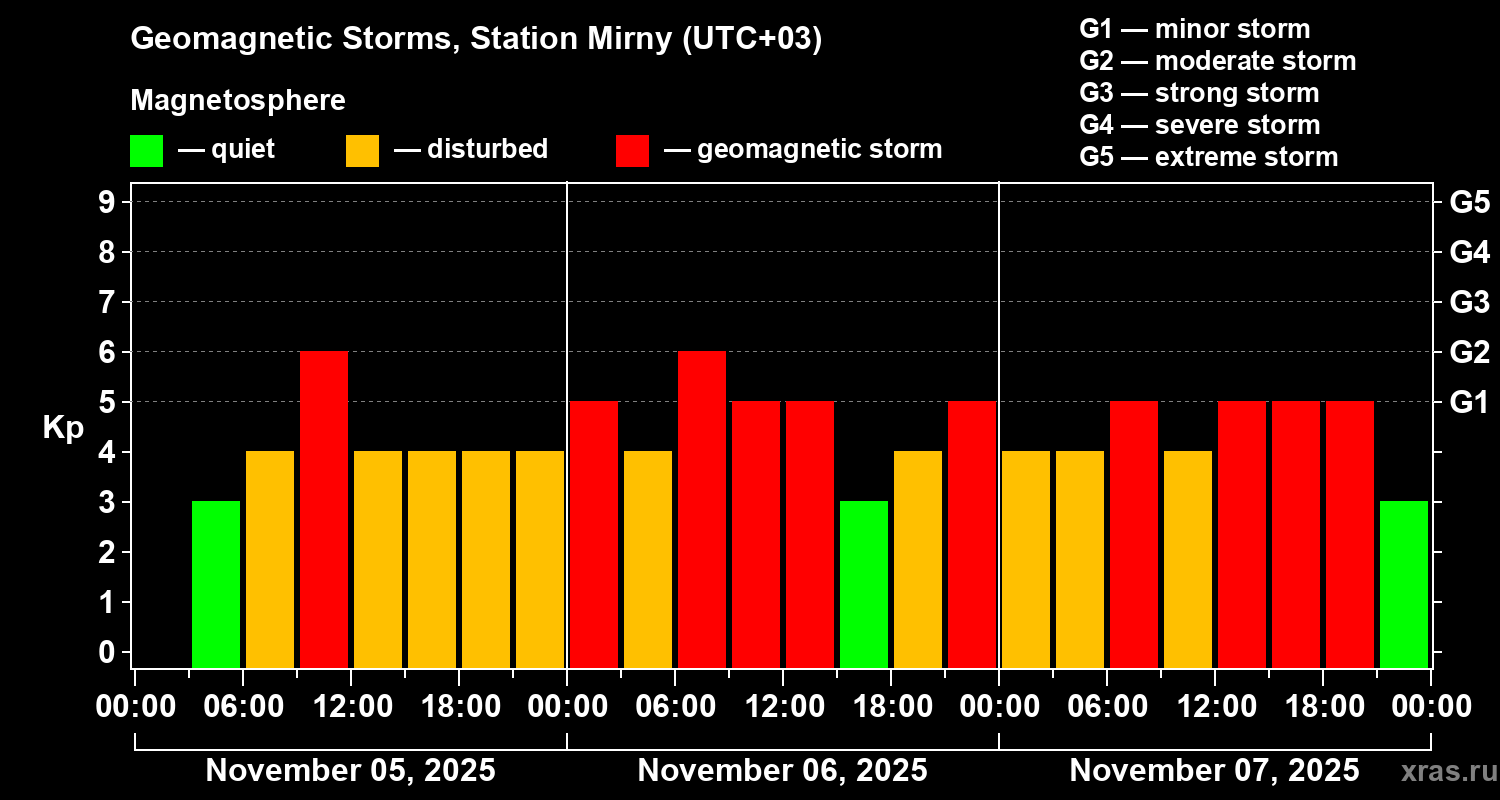 Geomagnetic storms in Station Mirny — Nov 07, 2025