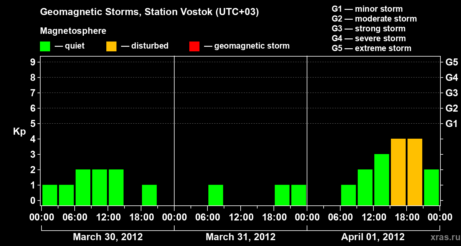 Geomagnetic storms in Station Vostok — Apr 01, 2012