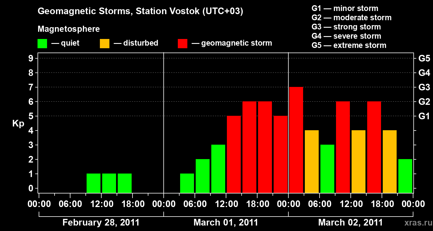 Geomagnetic storms in Station Vostok — Mar 02, 2011