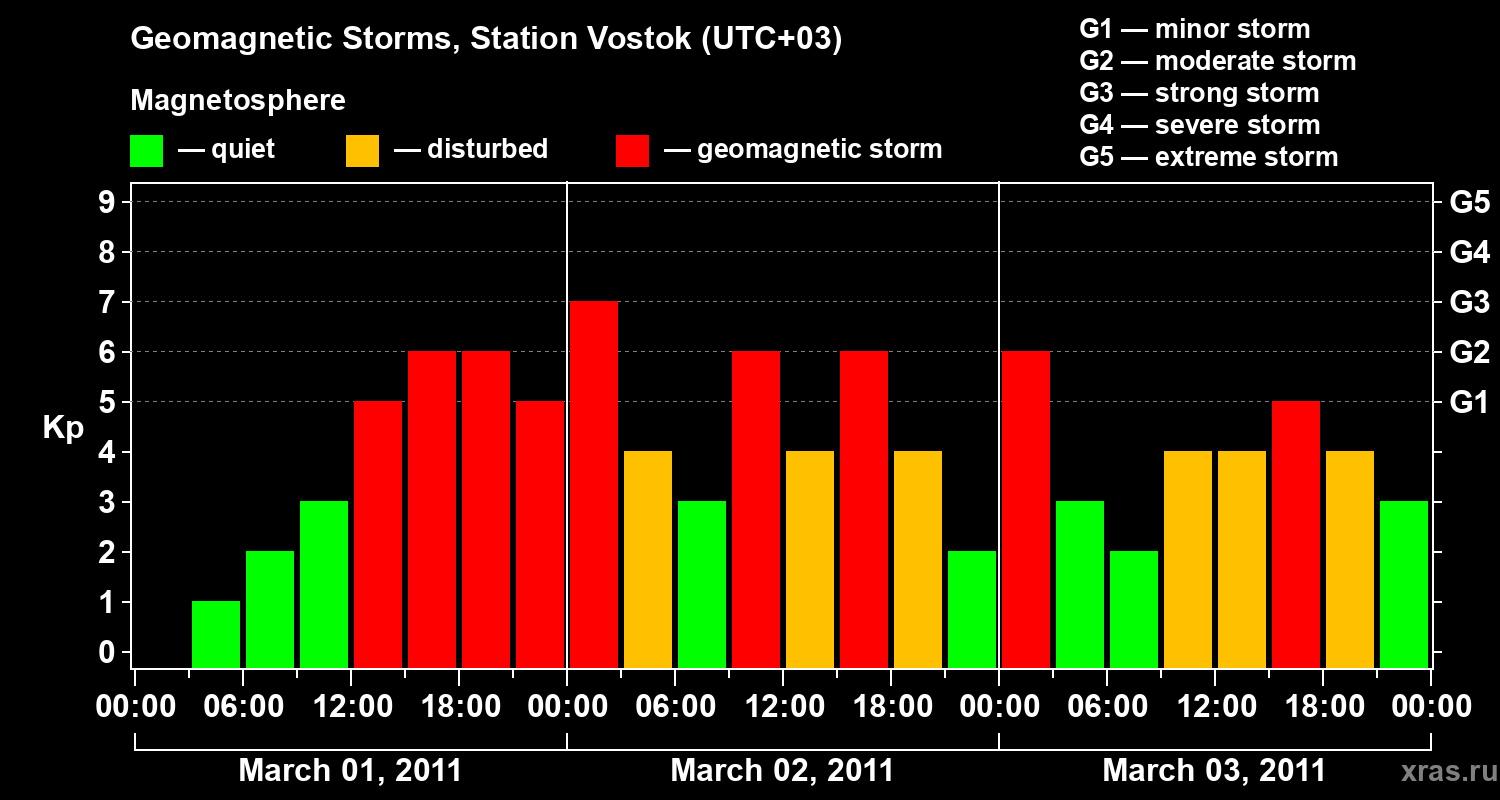 Geomagnetic storms in Station Vostok — Mar 03, 2011