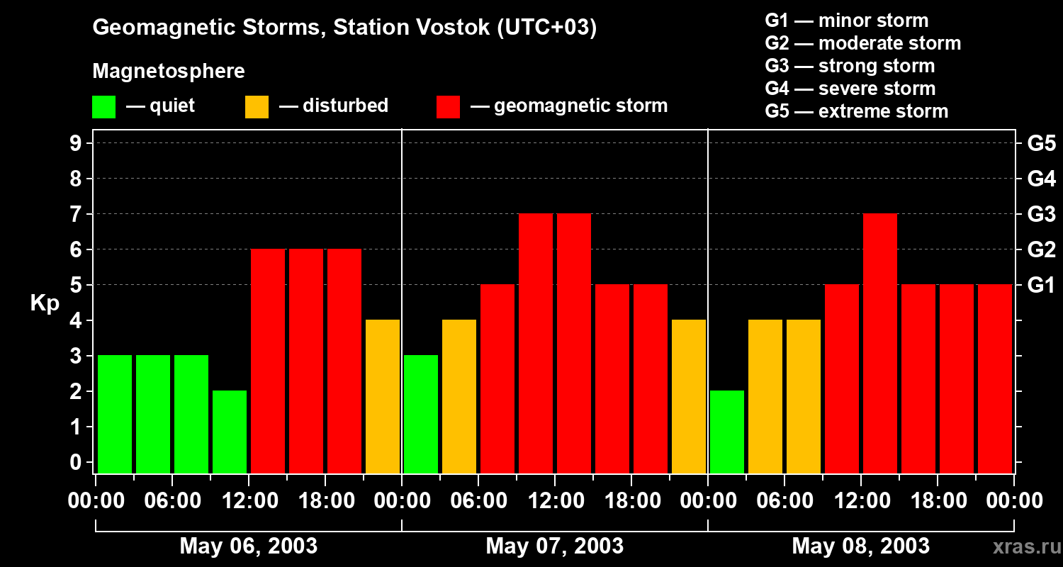 Geomagnetic storms in Station Vostok — May 08, 2003