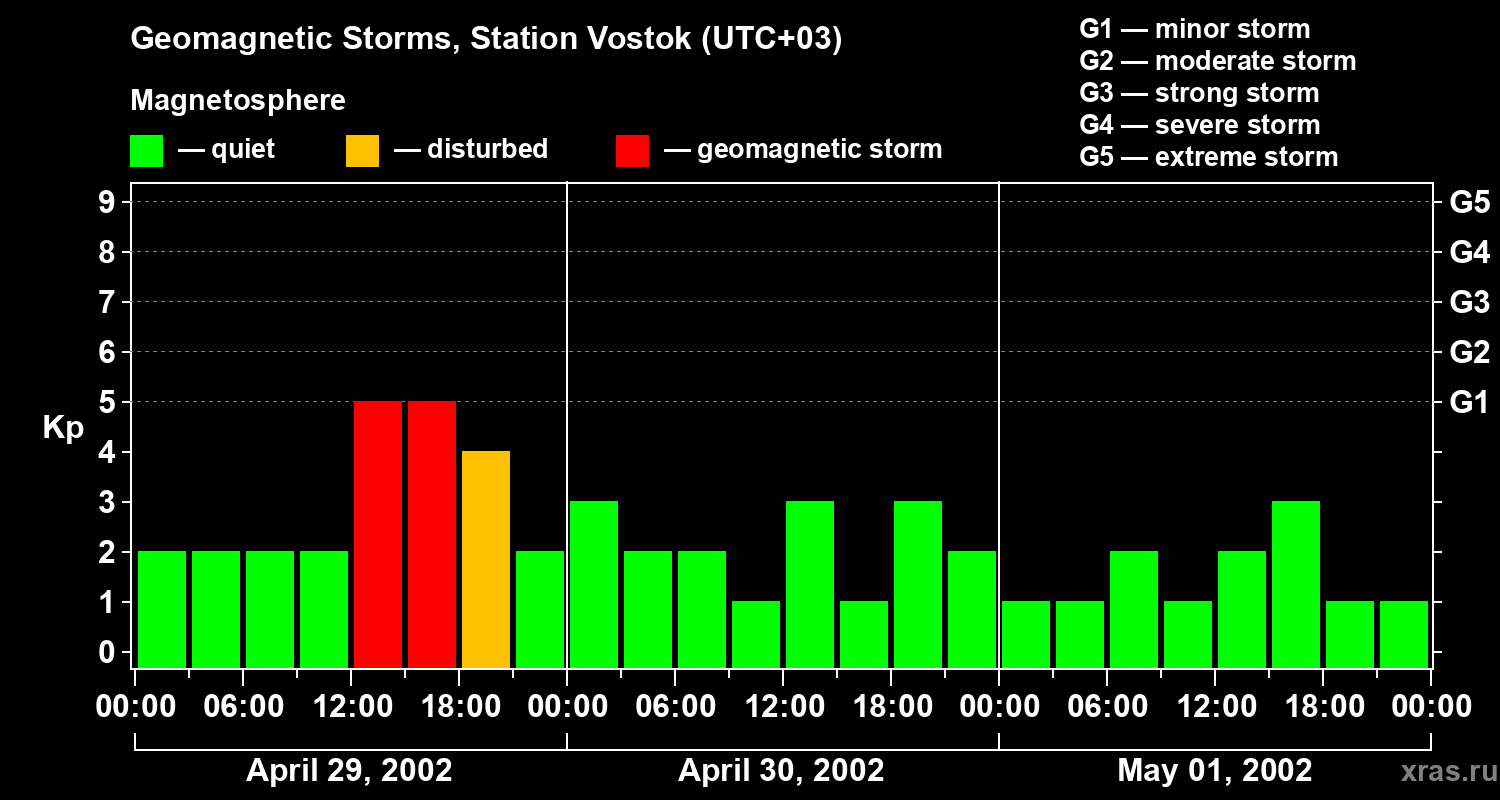 Geomagnetic storms in Station Vostok — May 01, 2002