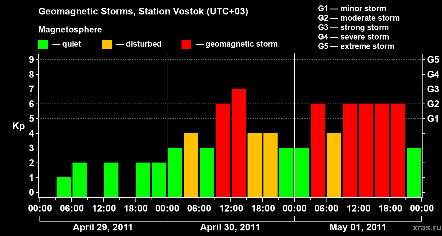 Geomagnetic storms in Station Vostok — May 01, 2011