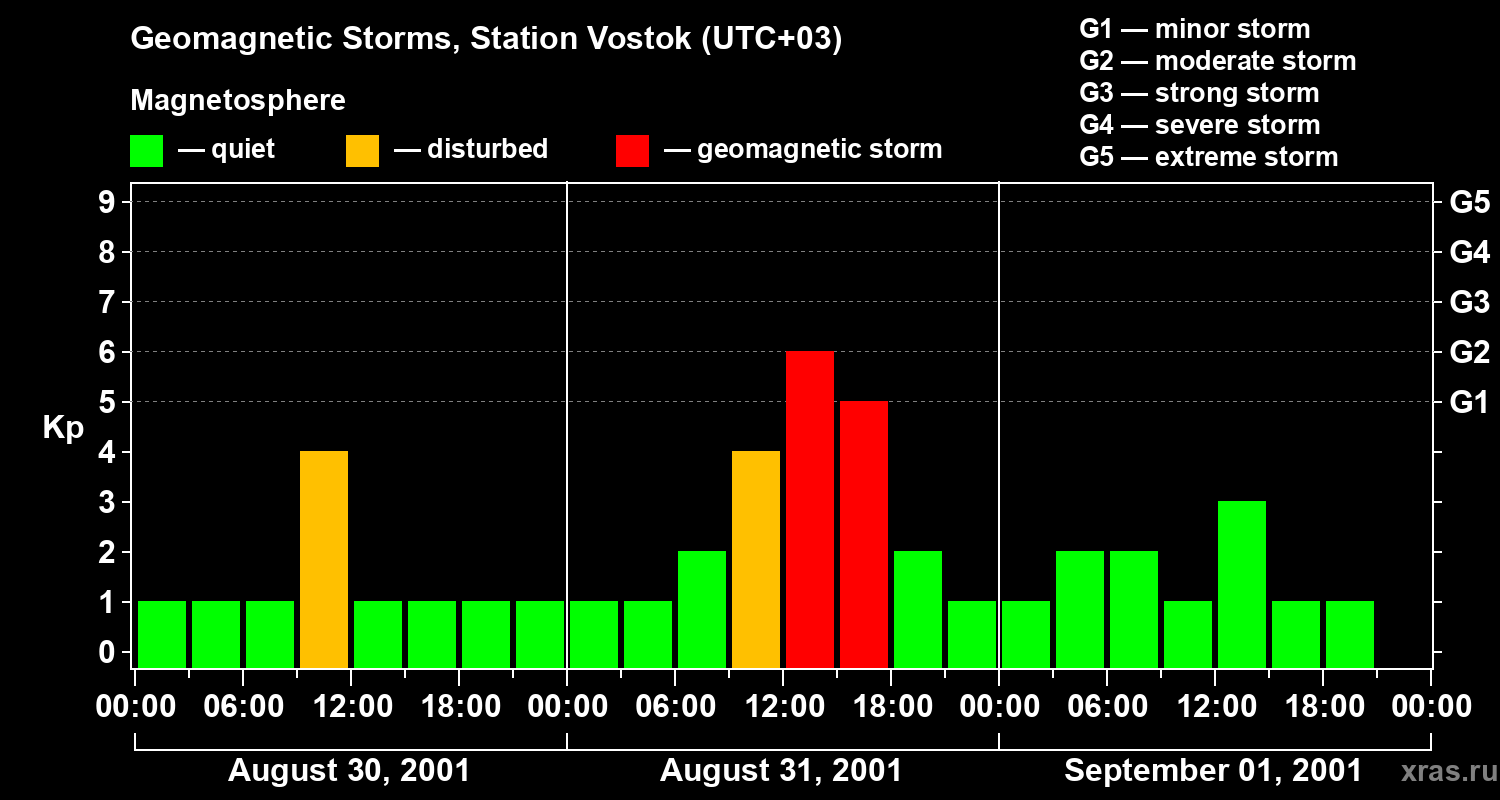 Geomagnetic storms in Station Vostok — Sep 01, 2001