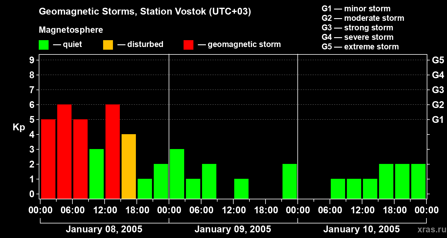 Geomagnetic storms in Station Vostok — Jan 10, 2005