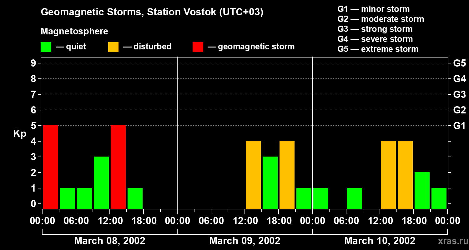 Geomagnetic storms in Station Vostok — Mar 10, 2002