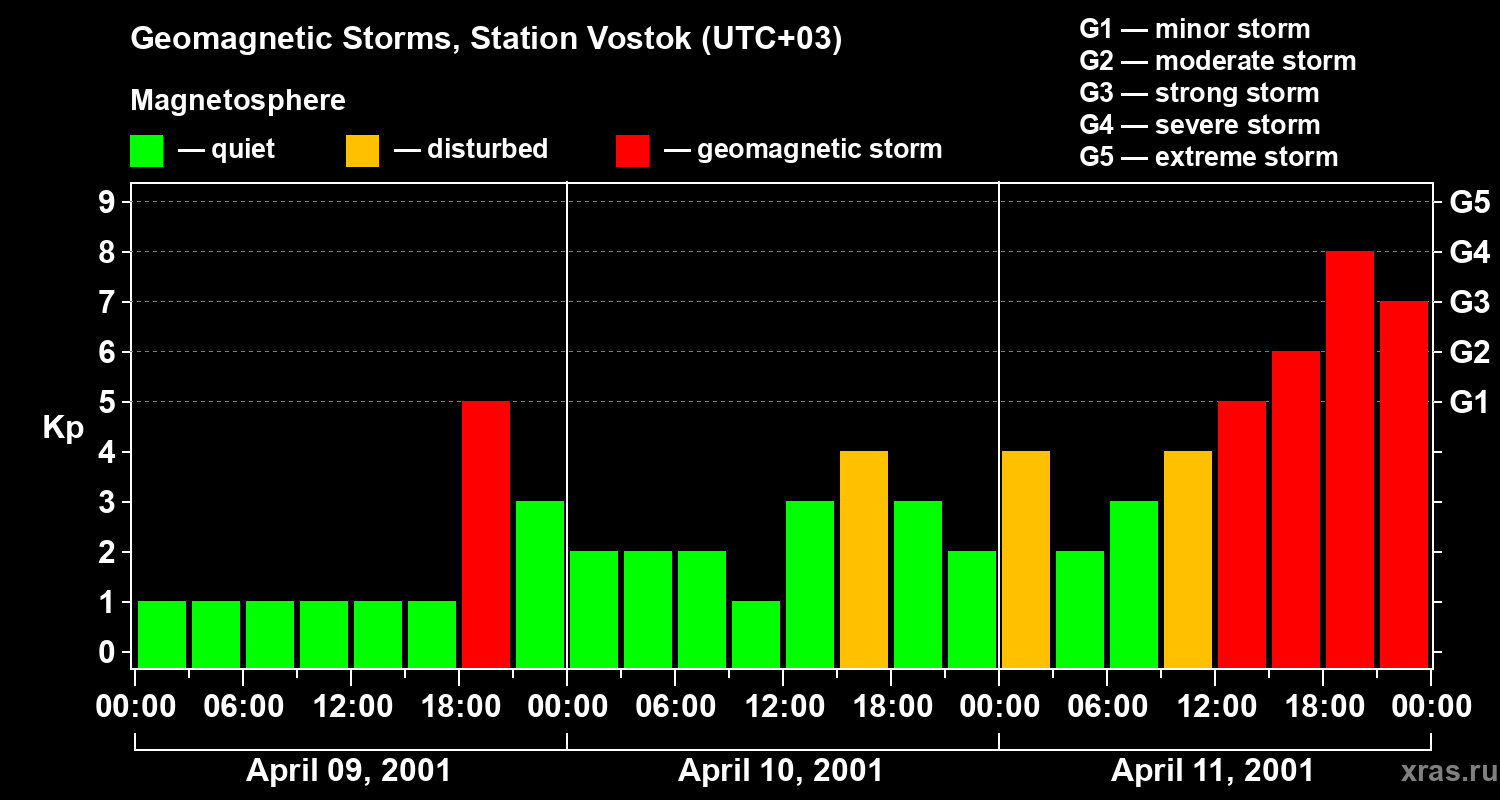 Geomagnetic storms in Station Vostok — Apr 11, 2001