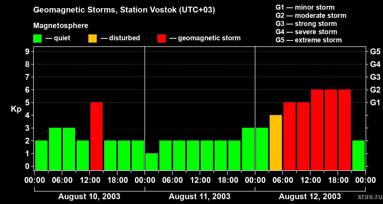 Geomagnetic storms in Station Vostok — Aug 12, 2003