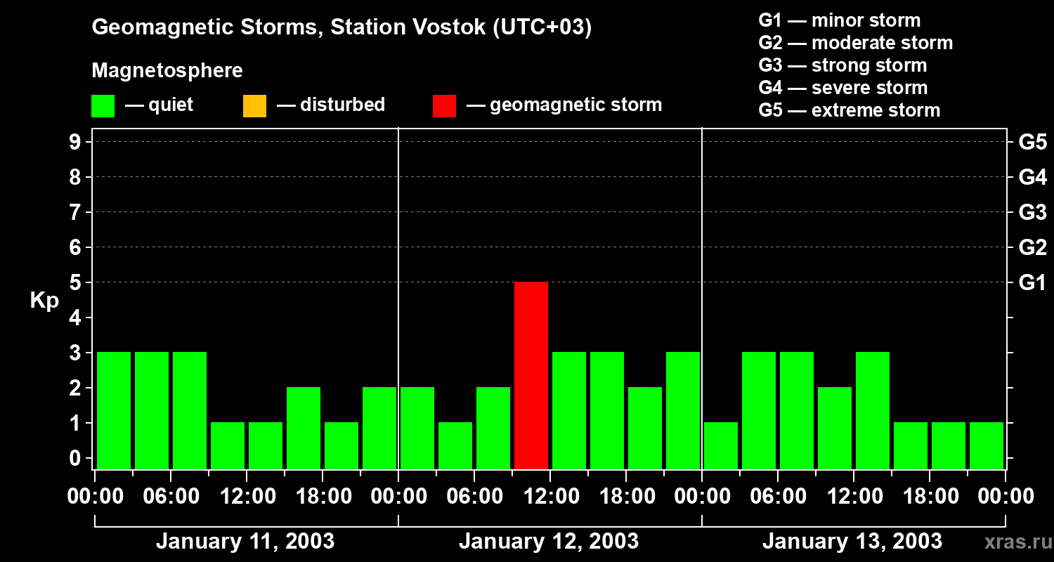 Geomagnetic storms in Station Vostok — Jan 13, 2003