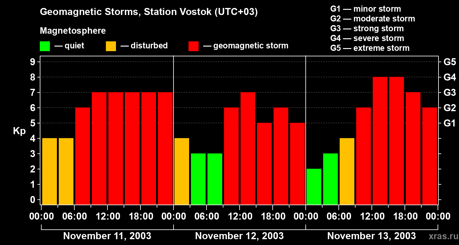 Geomagnetic storms in Station Vostok — Nov 13, 2003