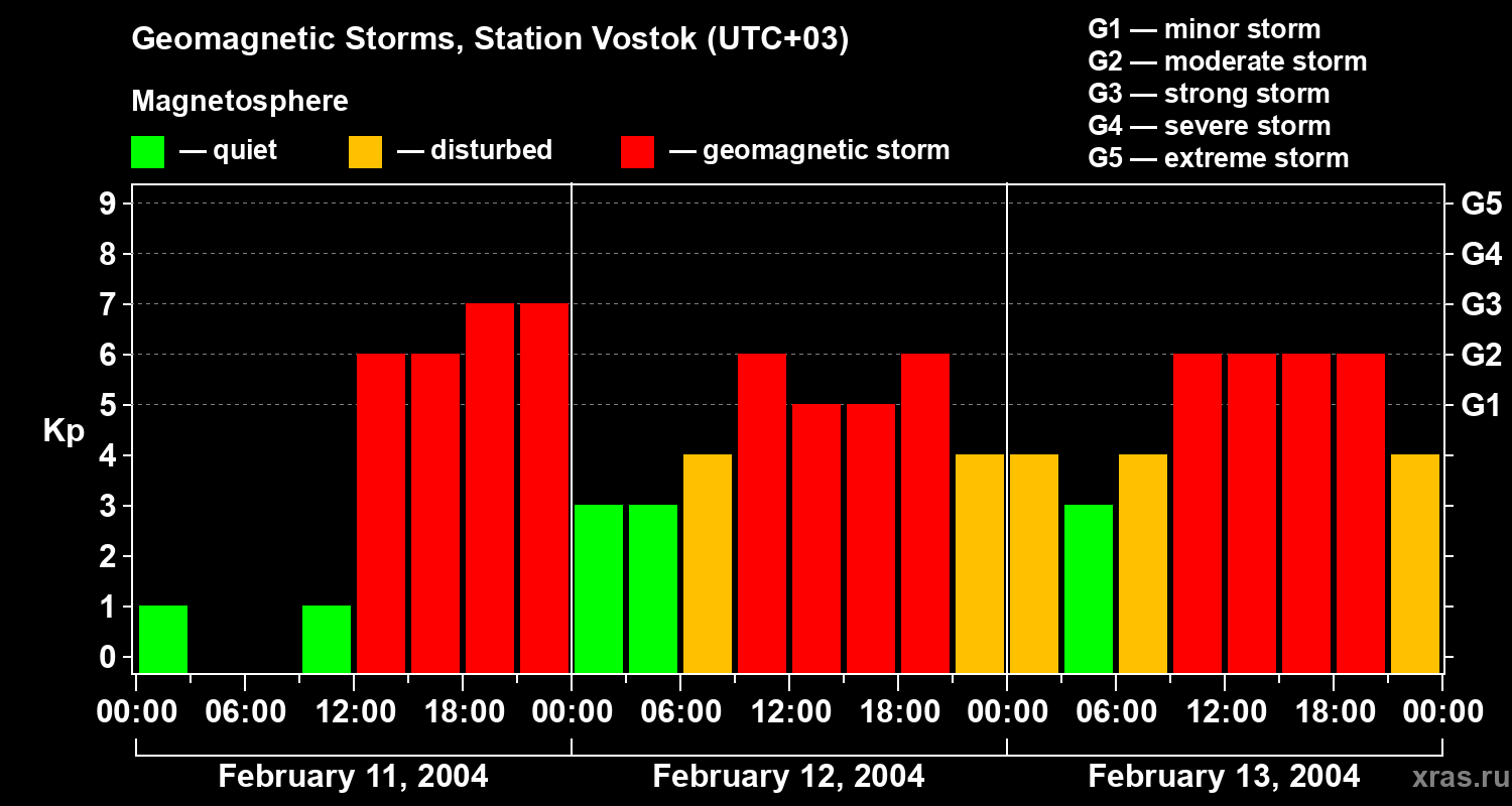 Geomagnetic storms in Station Vostok — Feb 13, 2004