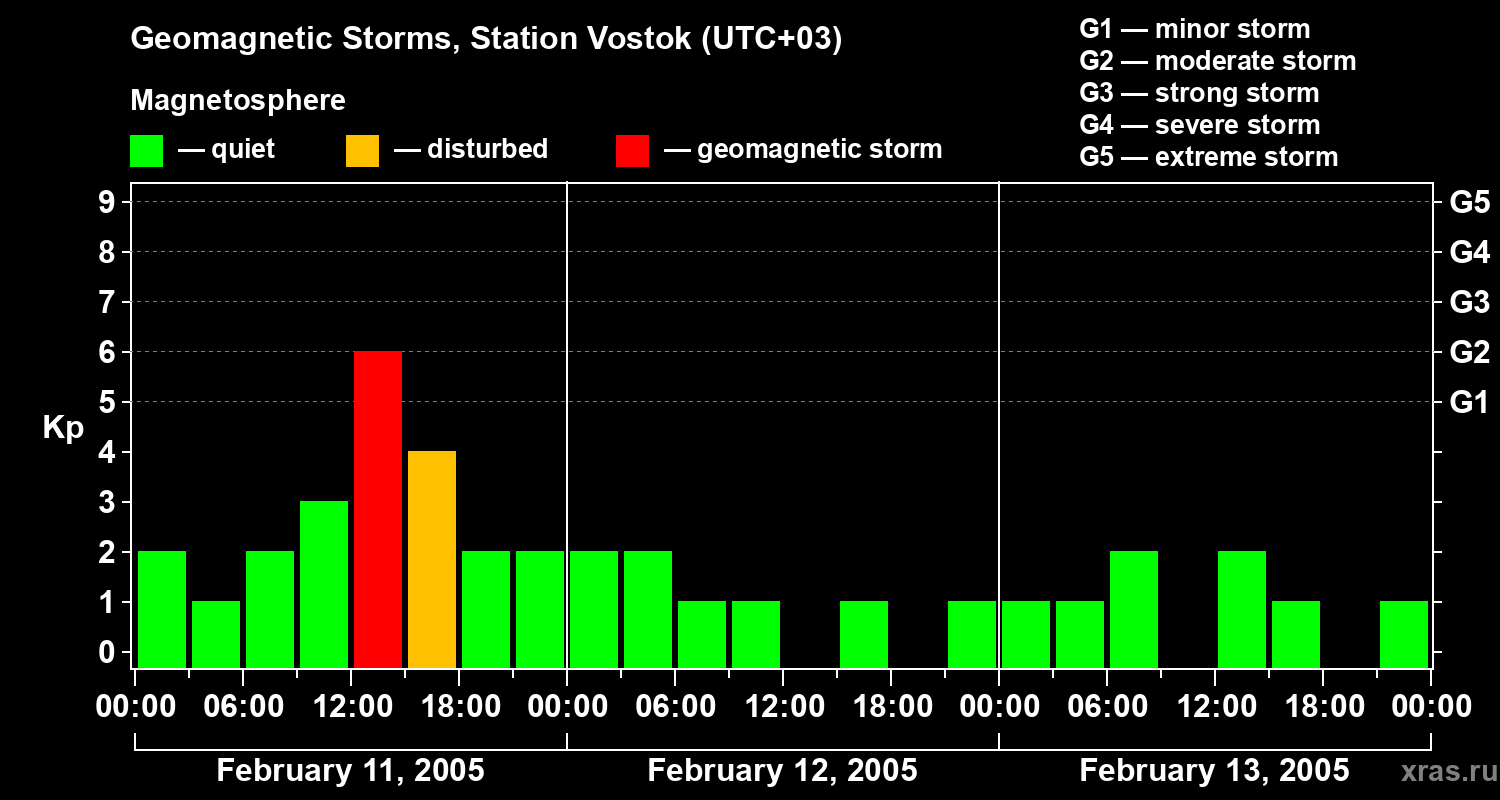 Geomagnetic storms in Station Vostok — Feb 13, 2005
