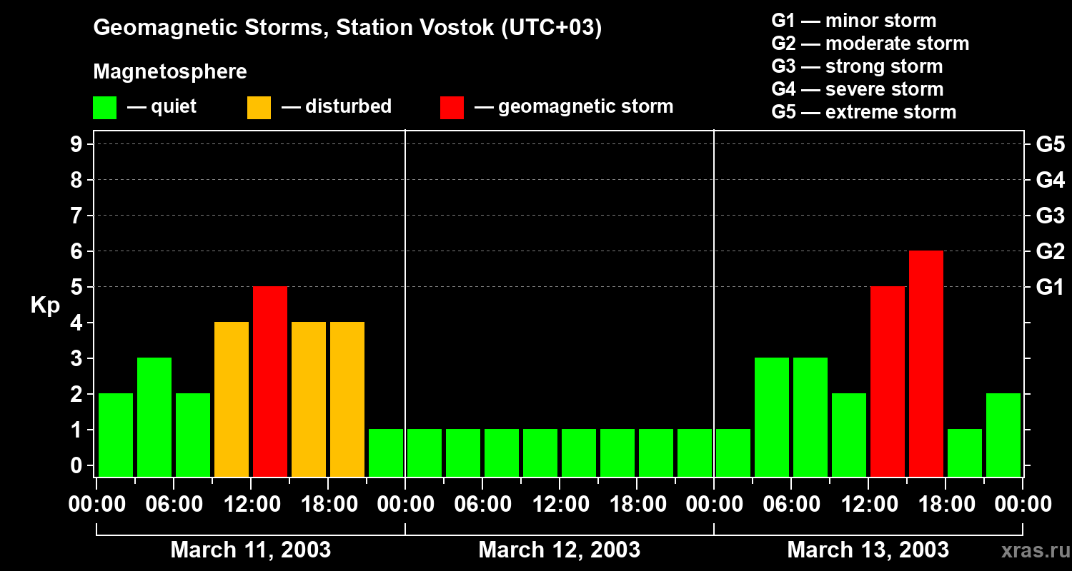 Geomagnetic storms in Station Vostok — Mar 13, 2003