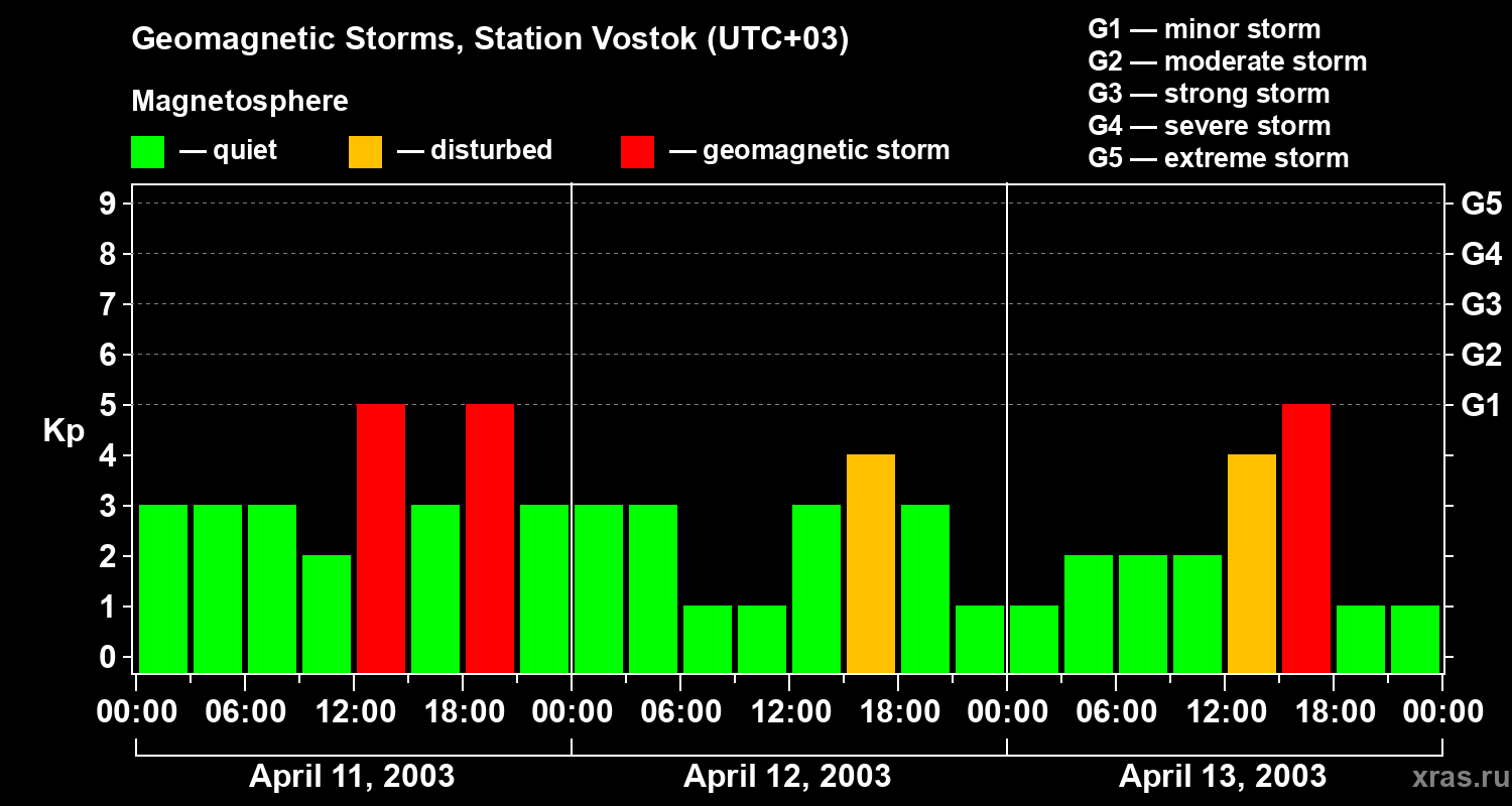 Geomagnetic storms in Station Vostok — Apr 13, 2003