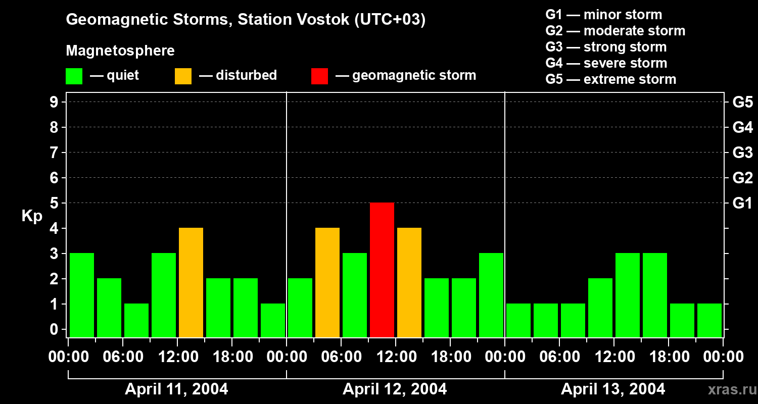 Geomagnetic storms in Station Vostok — Apr 13, 2004