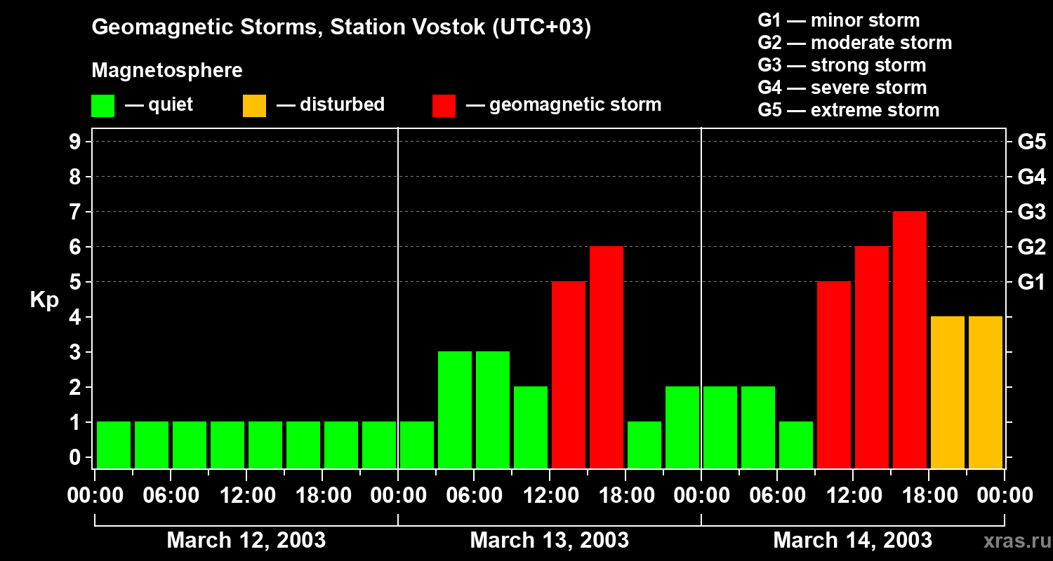 Geomagnetic storms in Station Vostok — Mar 14, 2003