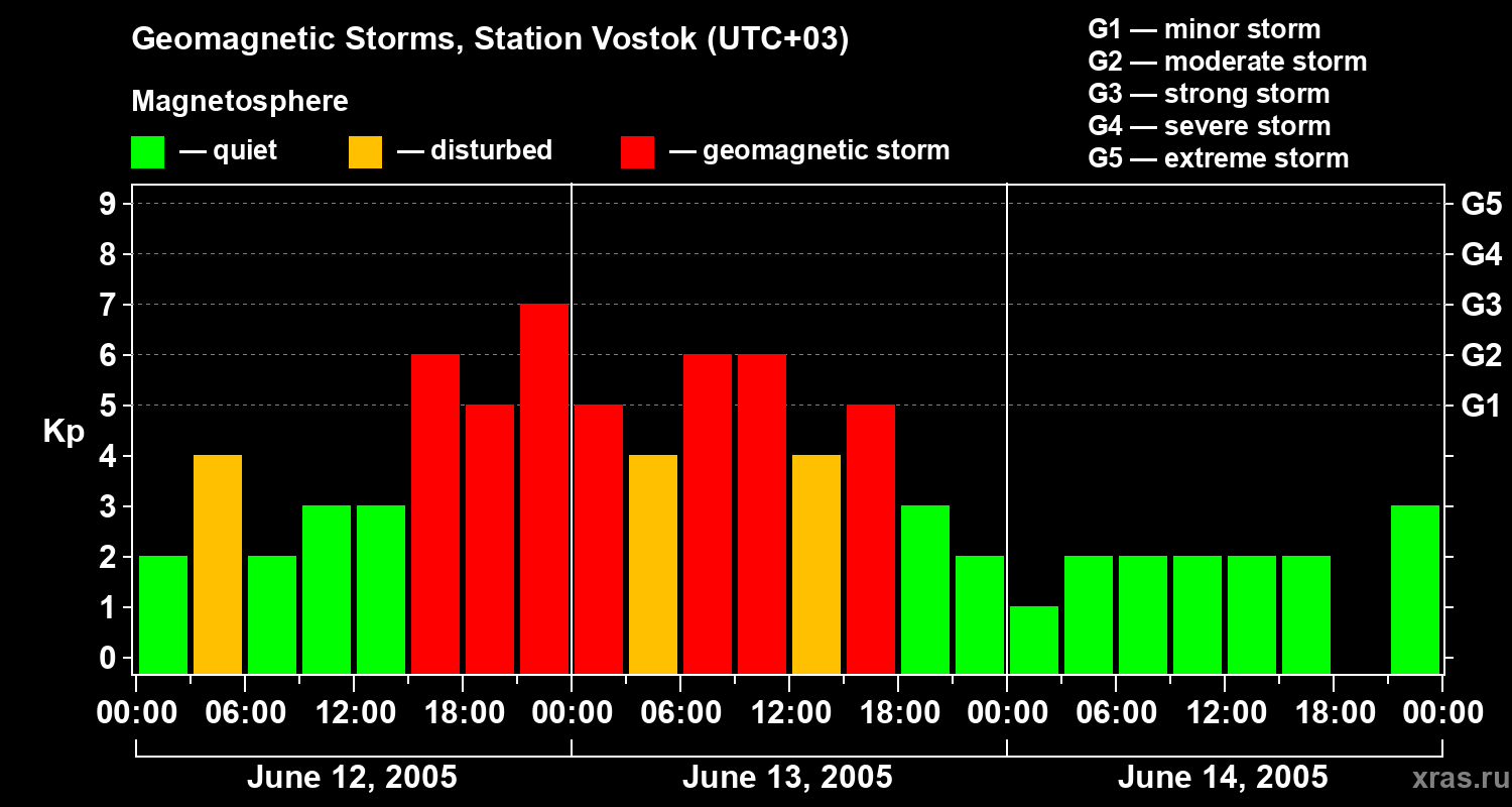 Geomagnetic storms in Station Vostok — Jun 14, 2005