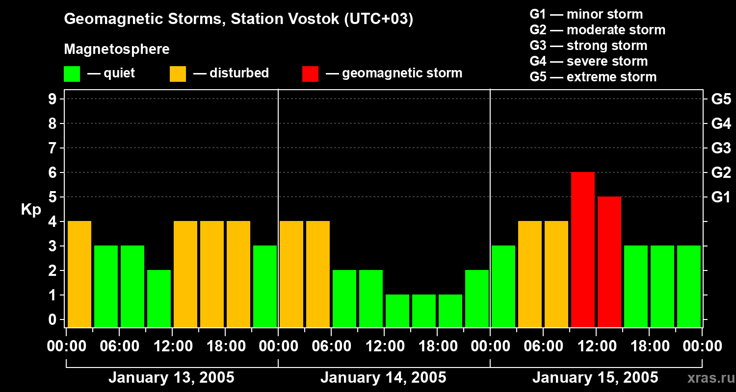 Geomagnetic storms in Station Vostok — Jan 15, 2005