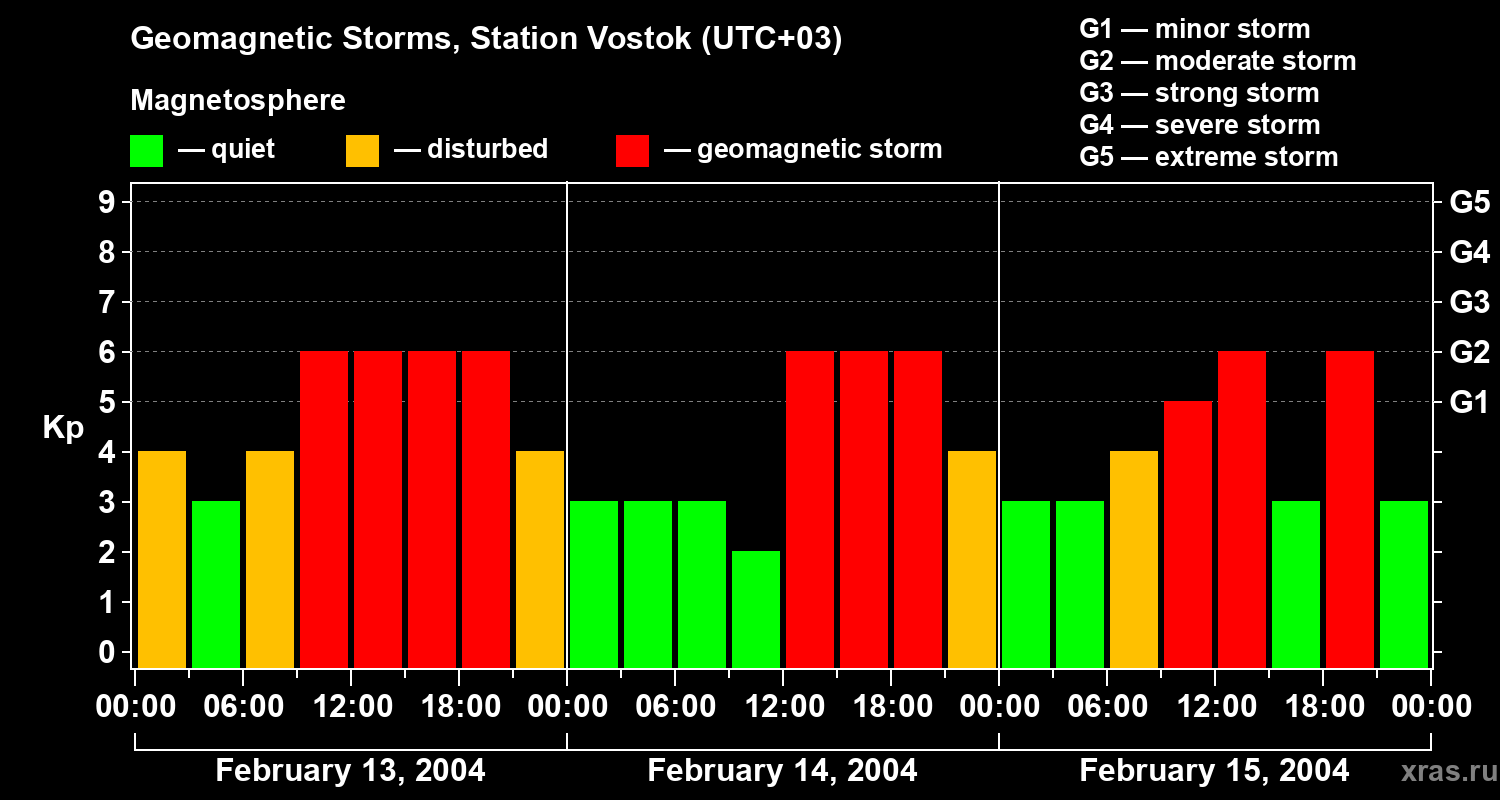 Geomagnetic storms in Station Vostok — Feb 15, 2004