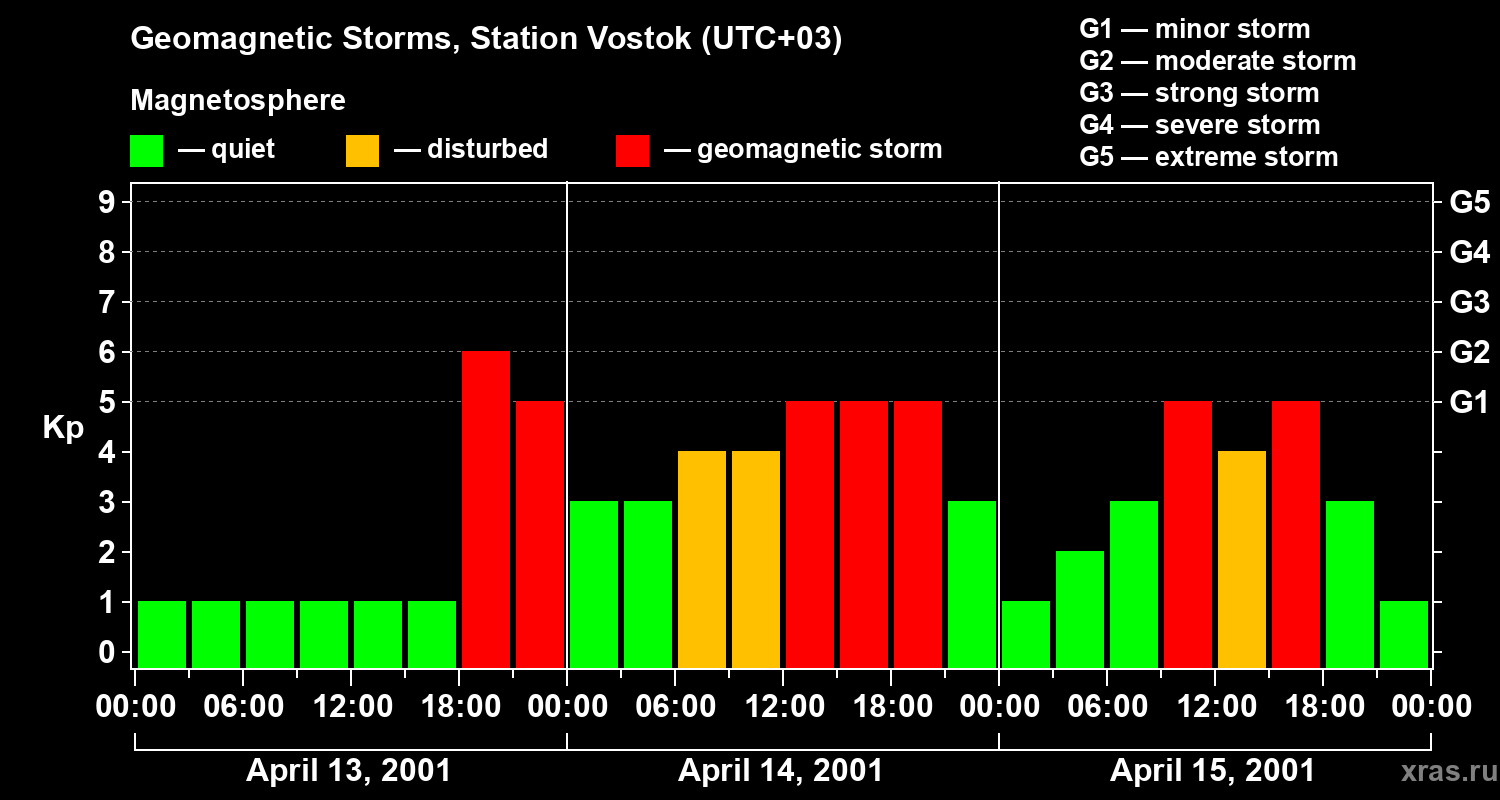 Geomagnetic storms in Station Vostok — Apr 15, 2001