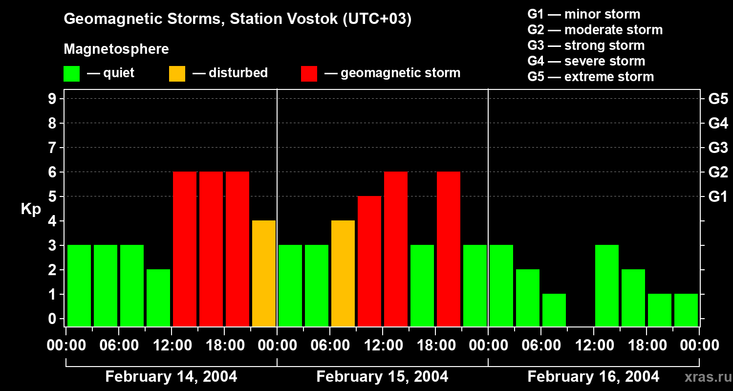 Geomagnetic storms in Station Vostok — Feb 16, 2004
