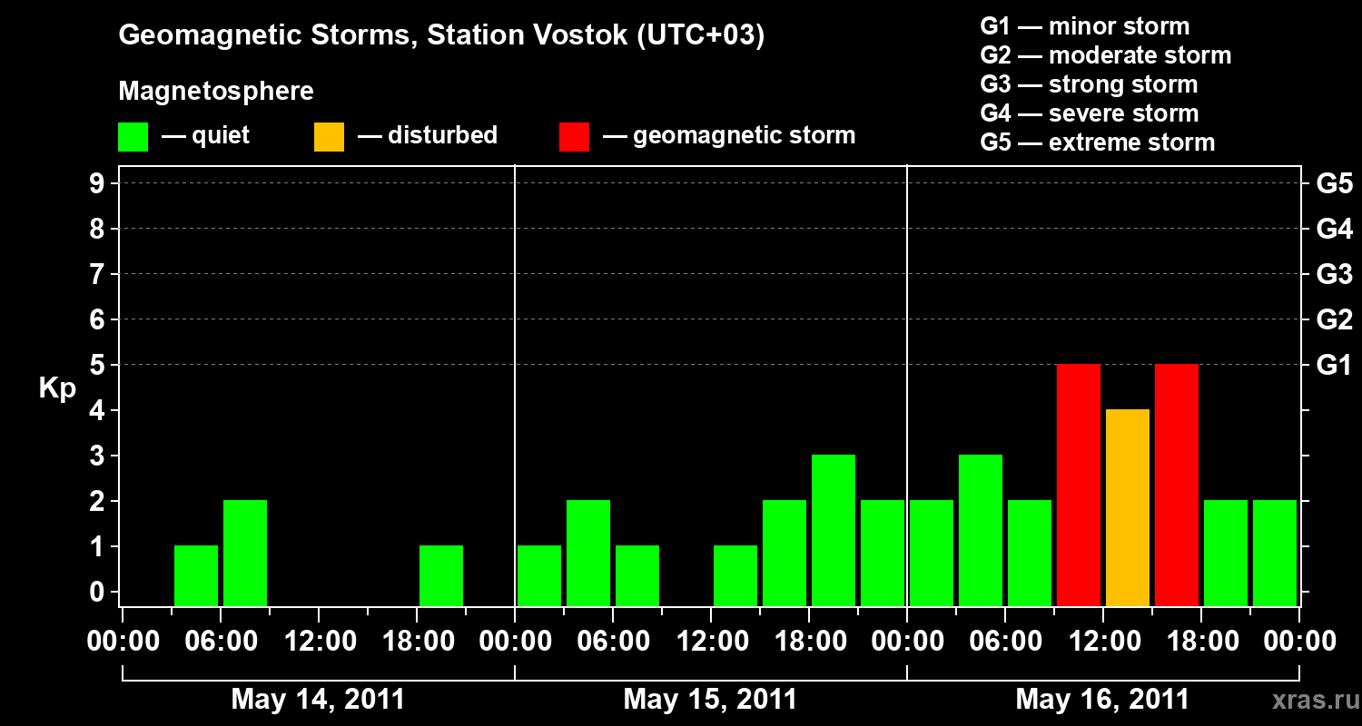 Geomagnetic storms in Station Vostok — May 16, 2011