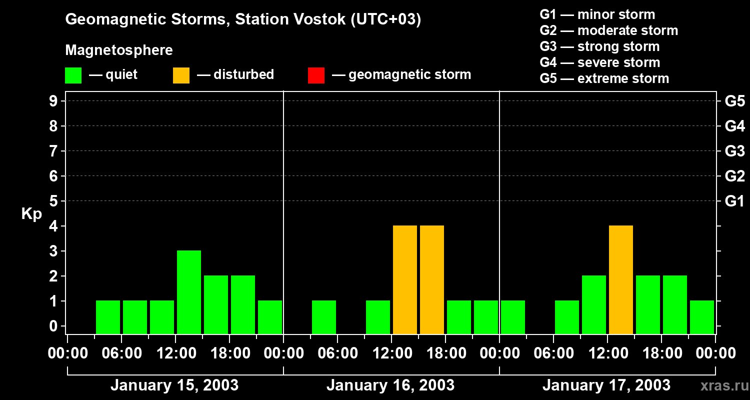 Geomagnetic storms in Station Vostok — Jan 17, 2003
