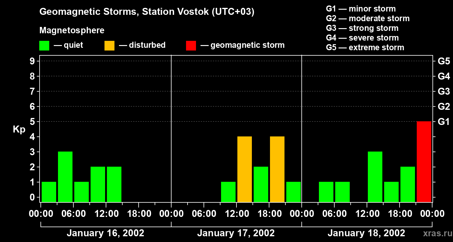 Geomagnetic storms in Station Vostok — Jan 18, 2002
