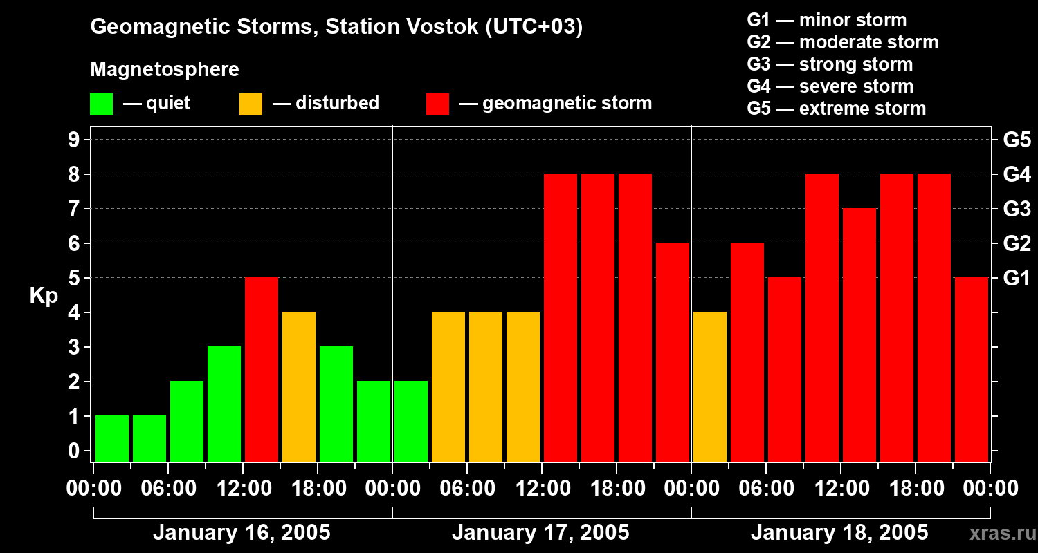 Geomagnetic storms in Station Vostok — Jan 18, 2005