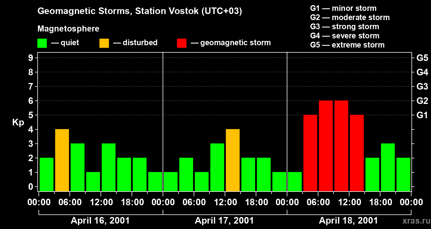Geomagnetic storms in Station Vostok — Apr 18, 2001