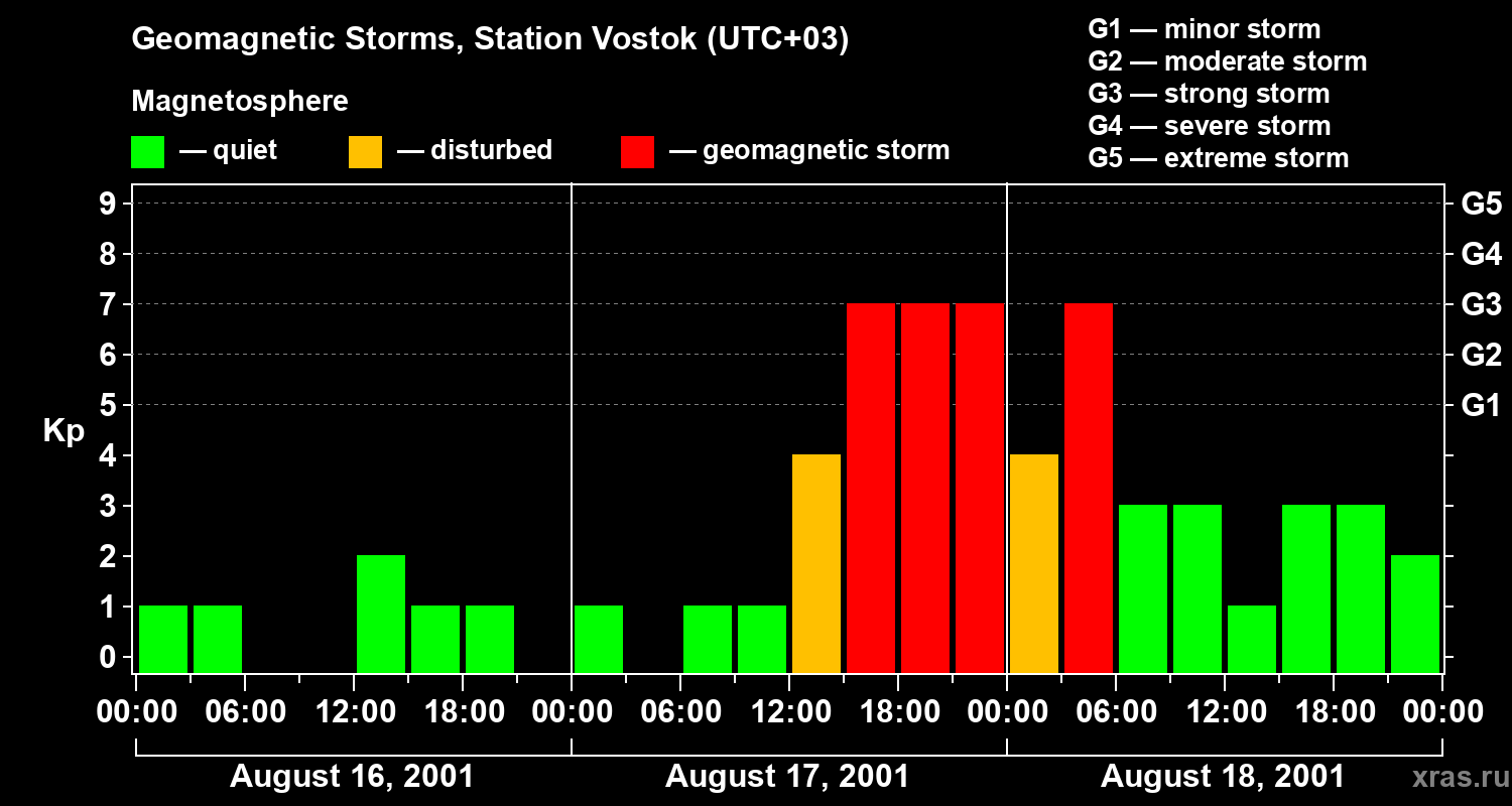 Geomagnetic storms in Station Vostok — Aug 18, 2001