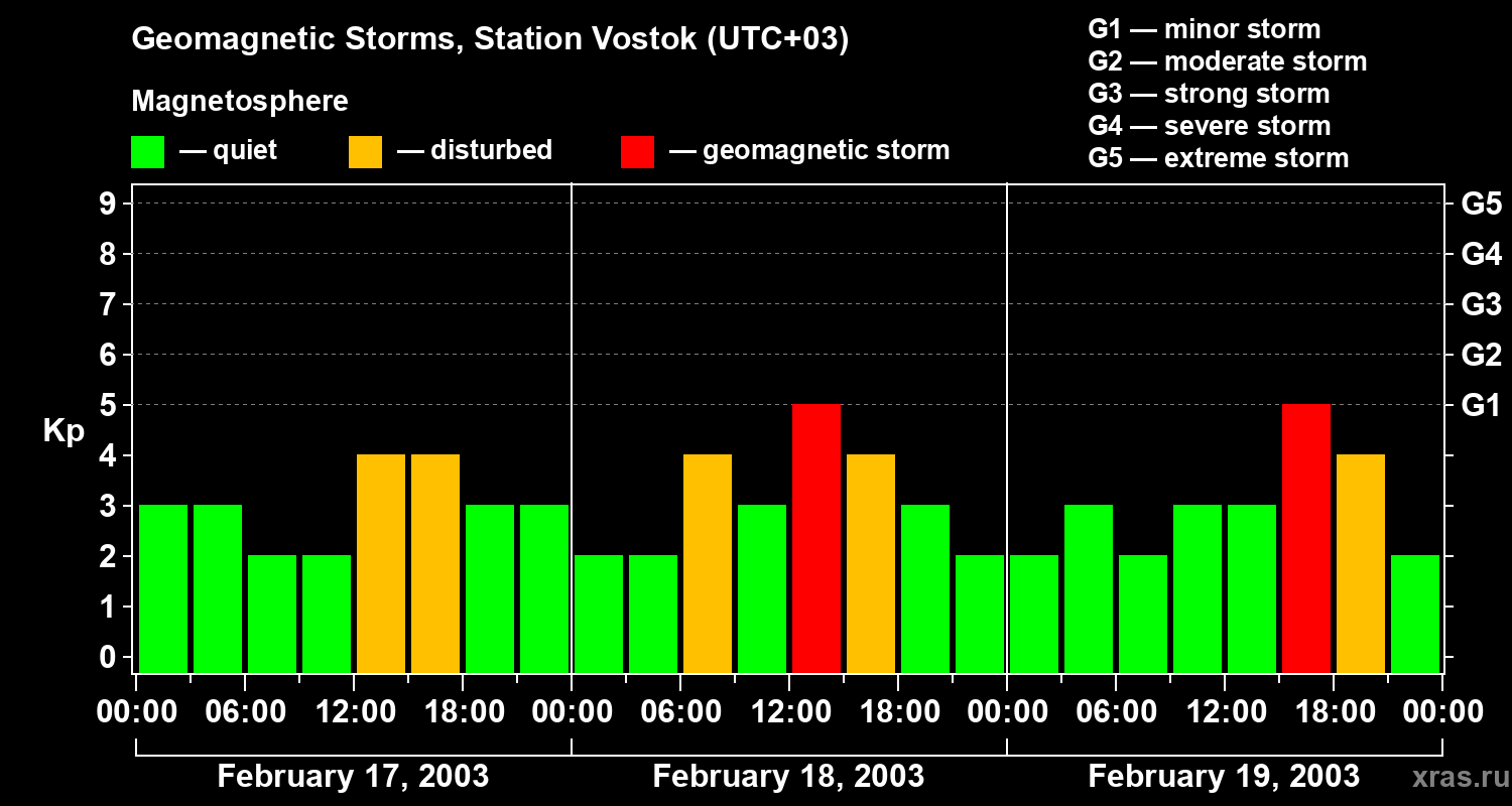 Geomagnetic storms in Station Vostok — Feb 19, 2003