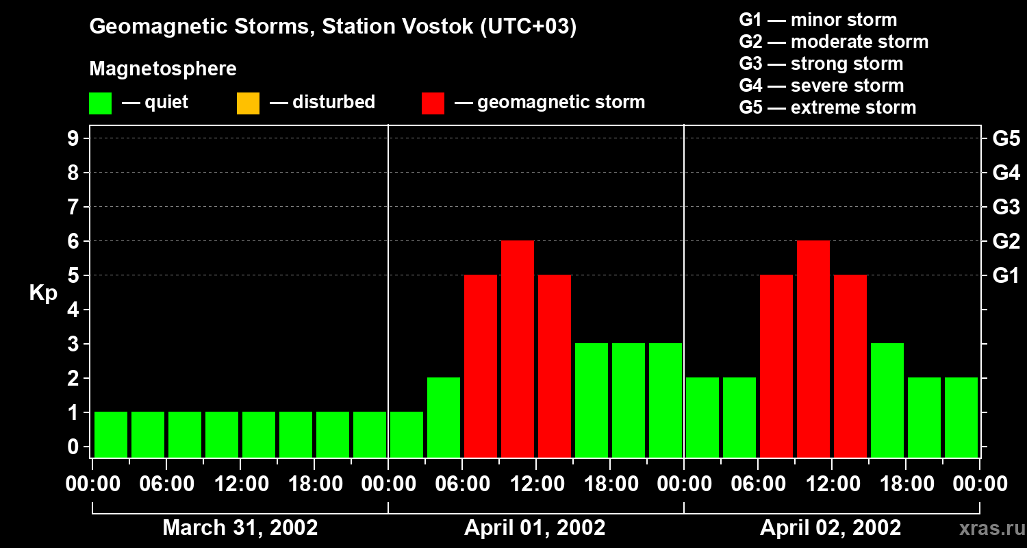 Geomagnetic storms in Station Vostok — Apr 02, 2002