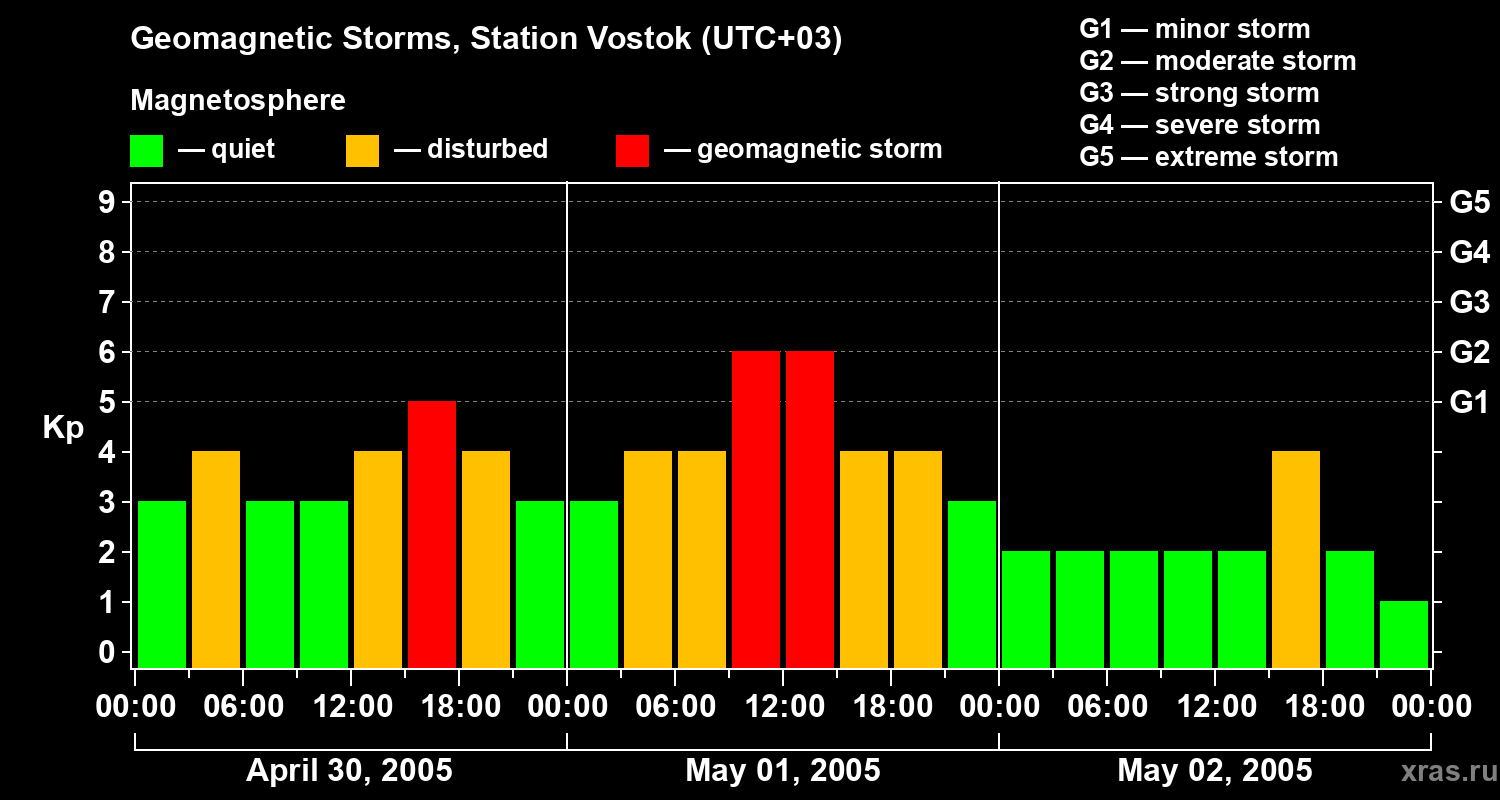 Geomagnetic storms in Station Vostok — May 02, 2005